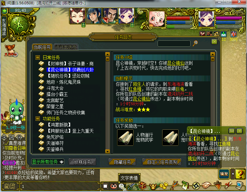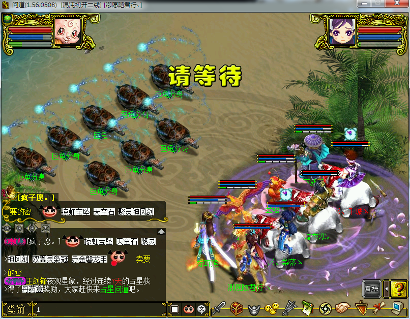 之后会给你一坐标,让你到指定地点处。之后就会遇怪,不过打完之后就会出现巨龟。由于记者问道为微端,所以画面加载比较慢。望读者见谅。最后把巨龟杀完之后可进入下一提示。