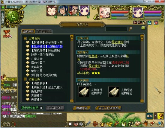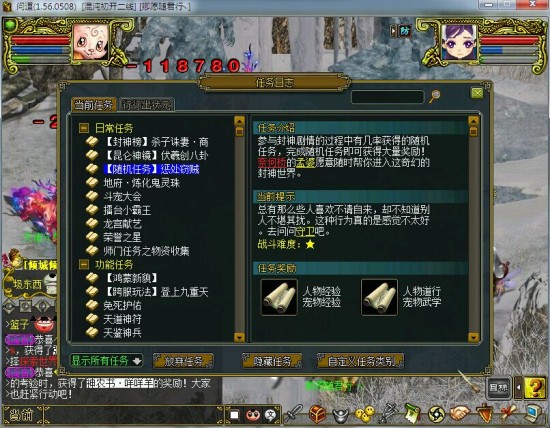 难度系数适中,如果没有足够的道行障碍也不成问题。只要你输出可以,就能打死。打完之后,会给你下一任务提示。