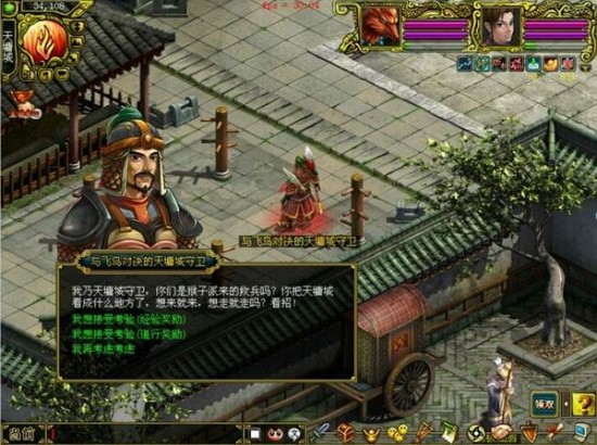2领取任务后,玩家与指定的天墉城守卫战斗,战斗胜利后,玩家玩家可在“寻找故交任务”、“去除心魔任务”和“驱赶守卫任务”中选择一个任务;