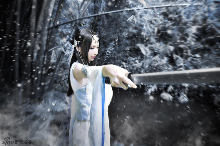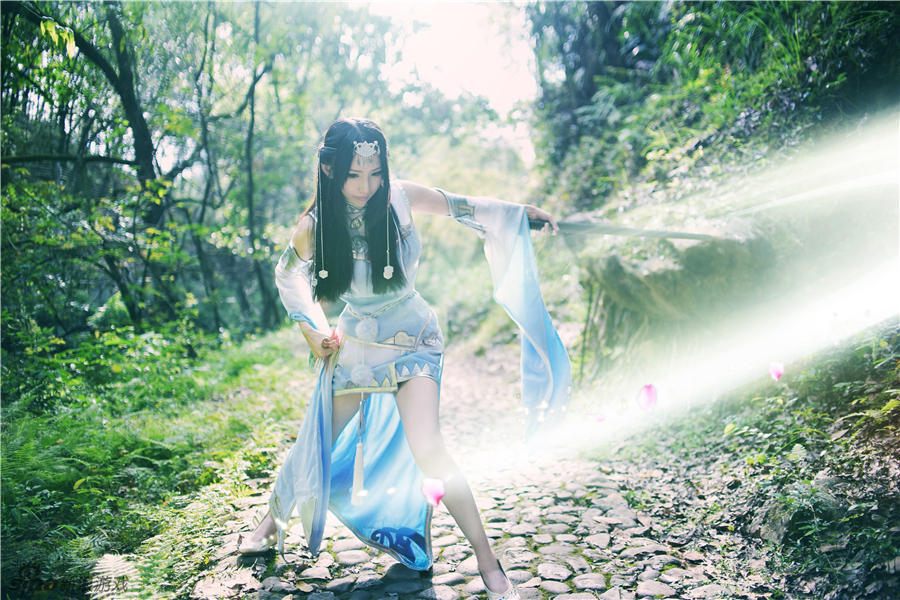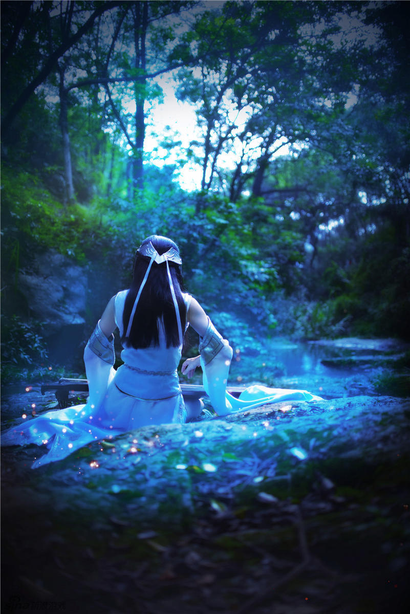 挥袖抚琴,七弦玲珑,怜影素剑,雨朦胧。