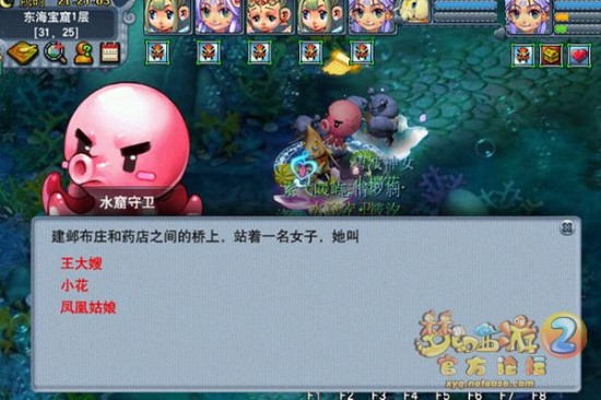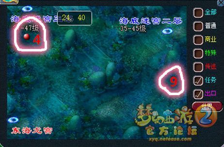 【活动介绍】:东海龙王昭告三界,在东海深处发现一隐蔽洞穴,水深不知几层,水晶宫史 料记载此洞穴极有可能东海秘宝洞穴,内藏宝藏无数,却不知危险几何,且水流湍急,寻常龟息术亦无法下潜,于是龙王特赐予碧水宝珠,助各位英雄侠士下潜探 宝,宝珠法力只能持续一定时间,能下潜至多深就看各位少侠造化了。在傲来国(111,109)水泳裁判长处报名参加后,即能获得碧水宝珠的法力,法力持续 30分钟,法力有效期间通过水泳裁判长进入“东海宝库”,即开始参加深潜比赛。与东海宝库内每一层的水窟守卫对话,完成他们的要求,即能下潜一层,碧水宝 珠有效期间内下潜的层数越多,获得的奖励越多,前三名的玩家还能获得额外奖励,下潜期间亦能获得各式各样的道具,增添潜水的乐趣。
