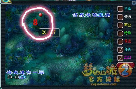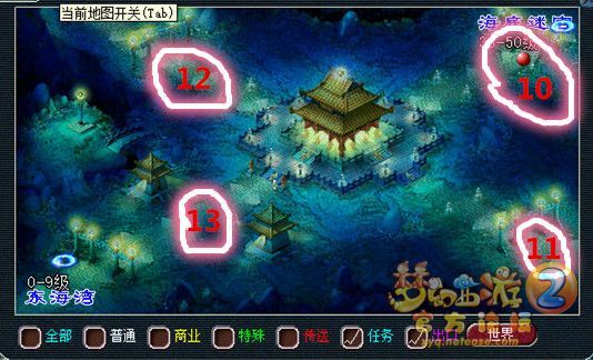 游 泳途中会遇到这三类怪,不过基本没有什么难度,队里还是需要带上一个封系,轻松简单就杀过去拉。不过也有童鞋说过,每次杀的时候留下一只怪等下回合杀,那 么遇怪的速度会慢一些,大家可以试试哟。最后一个第十五号裁判的坐标给大家一个都知道的小窍门,也就是到东海湾楚依恋这里亭子里面,然后用上攻击的动作就 可以点到对面的裁判啦。