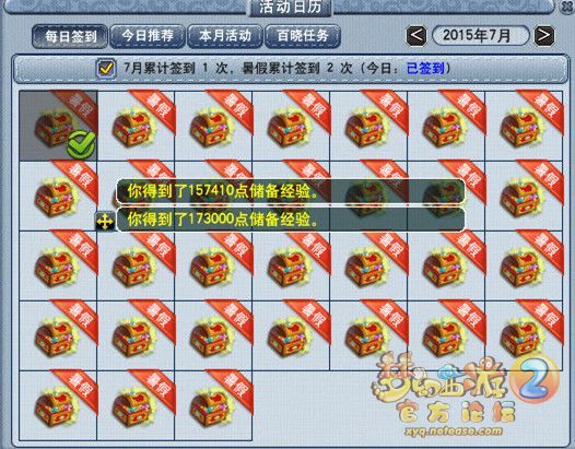 暑假期间,亲们每天上号都会看到签到表的,这张是晴儿175号的签到表获得的经验,还是不错的哟。签到累计五次即能获得签到任务,只要跟好友打个招呼就能完成签到任务了(给好友发送消息、进入好友家园拜访等)。目前还没到5次,所以晴儿没法给大家提供更多数据哟。