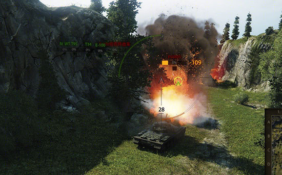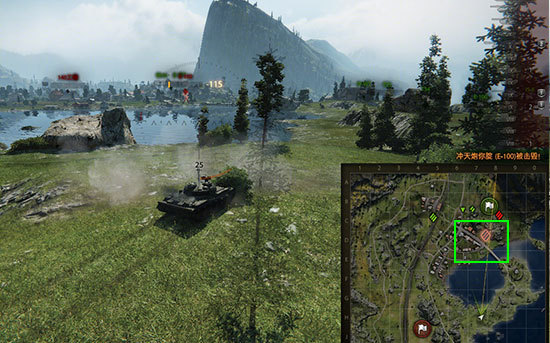 己方点亮利用视距打击敌人,合力击毁敌方最大威胁E100