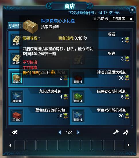 ③。其他,相对于后面的娱乐道具,更吸引小编的是人物成长道具,前面的钟汉良暖心小礼包可开出随机数量的道具,只要2个小蛙,一般情况是肯定要 买来拼拼人品的。100个小蛙的至爱大礼包,看起来很贵,但是50W的修为跟碎银狗粮都是永久提升玩家属性的东西,还是换一下比较好。