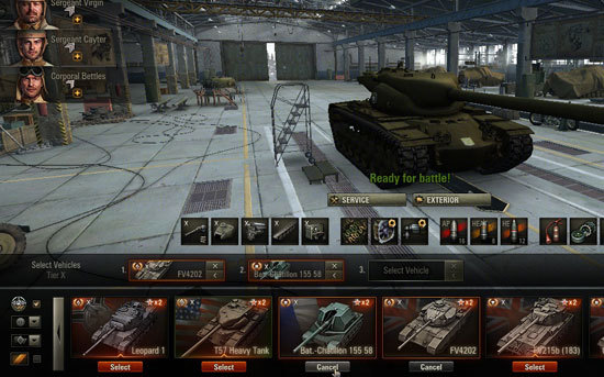 测试服传来了“巅峰战”模式截图,选择该模式后,玩家可使用8-10级自行研发的战车、金币战车出战