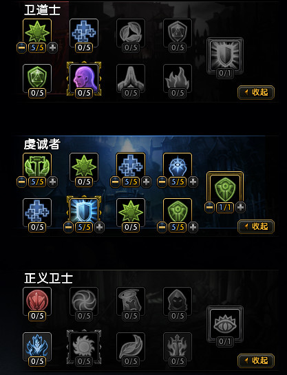 神圣措施——你的生命不足30%时,获得5/10/15%的临时生命值,5分钟冷却。保命技,提高容错率,给你和你的团队更多闯关机会(治疗倒了,基本意味着灭团)。至少加1点。