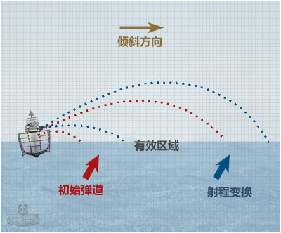 4.弹道影响:首先,倾斜程度会影响射击,船倾斜了,炮也跟着倾斜了。事实上,当船体倾斜时,朝内侧射击和以同样的角度朝外侧射击的射程是不同的,朝外侧射击的射程会降低,朝内侧射击的射程会提升,所以,请记住,倾斜会影响最大和最小射程。