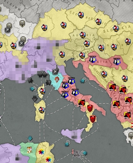 意大利地区以半数归“F系”所有。“战争贩子”在此并未取得实力上的优势,而“GL HF”的一组飞码也阻隔了“轮回”的进攻。