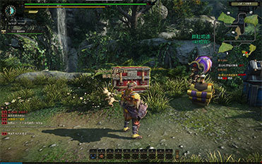猎人在进入猎场后,首先会在猎人营地发现一蓝一红两个箱子,蓝色的箱子是补给箱,存放着狩猎必备的各种补给品,红色的箱子是缴纳箱,猎人接取缴纳相关的委托任务时,需要把物品缴纳到缴纳箱中才能完成委托。