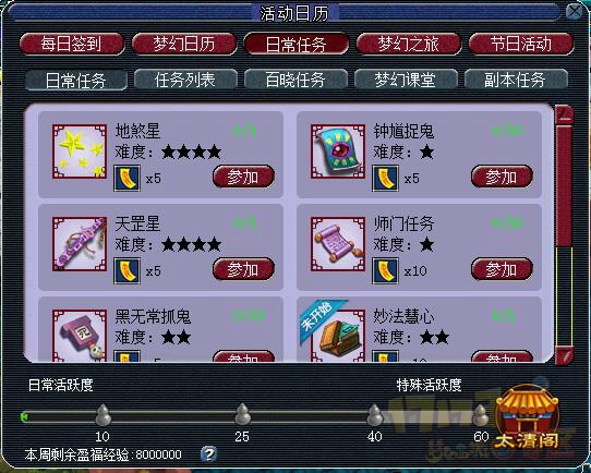 我拿师门任务举例。其实完成日常任务的额外奖励一直都有,只是好多玩家不知道,甚至懒得领取,也是在游戏日历上,当你完成20个师门的时候,后面就会出现一个小礼物的图标,点击会获得一些经验奖励,我记不清具体是多少,好像渡劫的有额外的小二十万经验拿的样子吧。但是今天,我刷完师门,获得了10个太清符。我到兑换界面一看,居然最少的也要80个才能换,那也就是说我只刷师门的话,1个礼拜也换不到一棵葫芦。而且目测葫芦拿到的经验不会超过150万,所以我说,奖励有可能是下降的。