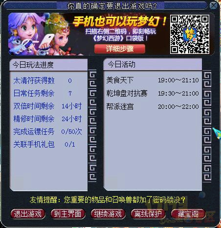 另外诚意不足的还有上图:太清符获得数、日常任务剩余数量:7。 我自己研究了N久才研究明白,居然说的是还有7种“日常可做”,写清楚点也可以嘛。不然谁知道这是7个?7轮?7只?写个7,玩家肯定看不懂。
