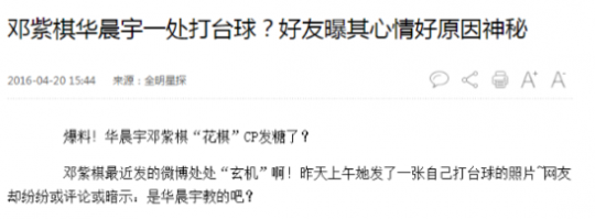 尽管这段恋情从3月份曝光后双方就以“只是在音乐上互相欣赏”为由否认,但随着4月份以来G.E.M。在微博上的频频发糖,以及在刚刚结束的专辑《新的心跳》广州签售会现场表示在过去的三年中“自己失去过深爱的,也收获到珍贵的”,让人不得不怀疑花花的一句“遇上你,我相信#爱有平行时空#”是否也是为了回应邓紫棋而做出的爱情宣言。