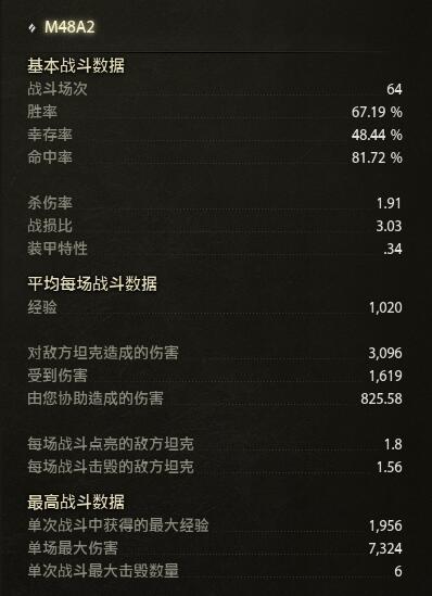 接下来开始介绍M48A2坦克各个方面的数据属性:
