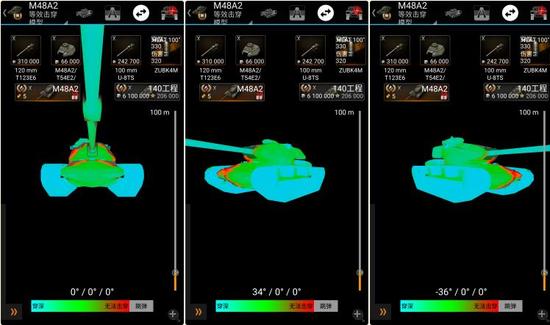 M48A2的炮塔和百夫长AX的炮塔类似,装甲厚度和等效都不高很好击穿,但是当他们利用十度俯角卖头的时候,一是露出去的面积小,二是更容易发生跳弹, 尤其是对银币弹效果很好。