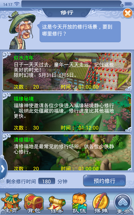 活动期间,玩家(角色等级≥10级,单人)可在长安城(236,115)童真使者处选择选项“静修忆童趣(挂机)”,进入挂机场景。在挂机场景中,每3分钟会自动获得一次经验奖励,玩家单天最多可以获得100次经验奖励,在每天00:00刷新次数。