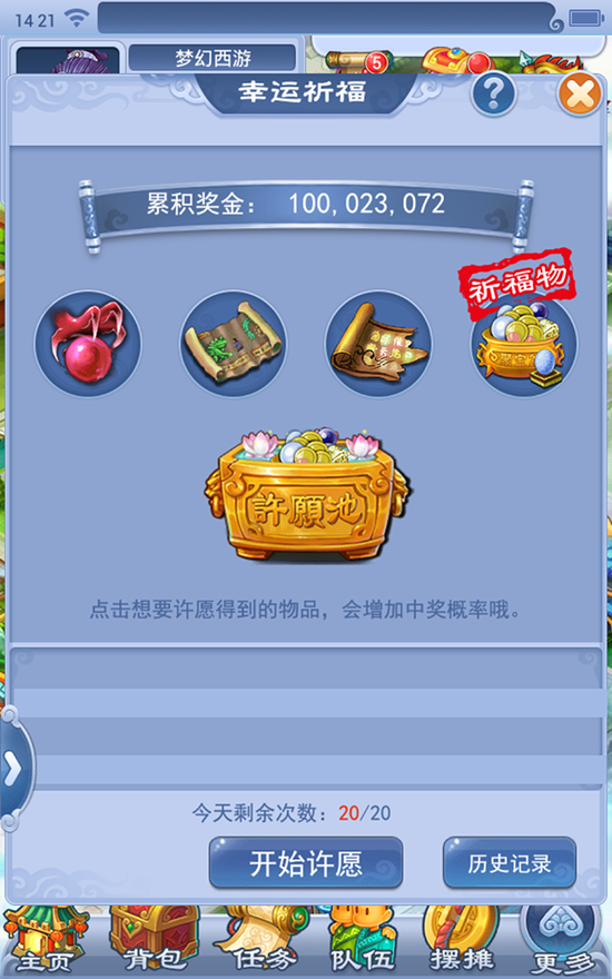 2、 玩家可以在挂机场景中的幻境仙女处购买小糖果,购买后可以获得20次双倍经验奖励。