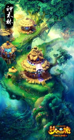 武神坛之旁生长着一棵千年神树,独木成林,鸟语花香;神木族人就居住在此处,与神木一起默默守护着武神坛,传唱着延续千年的故事