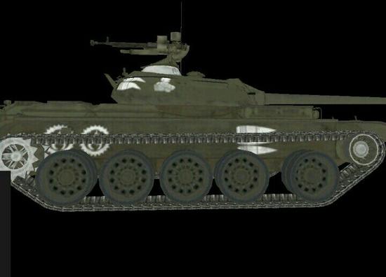 果然和苏系中坦一样,左边油箱右边首上驾驶员。侧面就不放图介绍了,因为侧面弱点很大众,侧中侧前是弹药架,侧后是引擎。