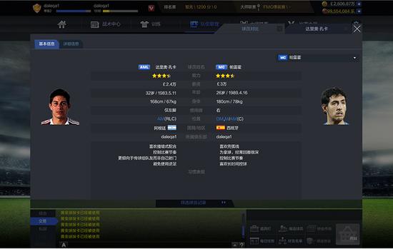 第二:球员信息界面,可以对该名球员,执行“球员对比”、“续约”、“解约”操作。