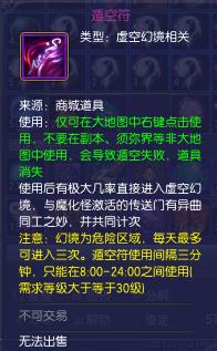 而虚空幻境所需的遁空符,在仙友每日在线奖励会免费获取一个,如想多次进入还可以在商城中购买,需注意,遁空符仅可在大地图中右键点击使用,以防遁空失败,而使用后会进入虚空幻境。