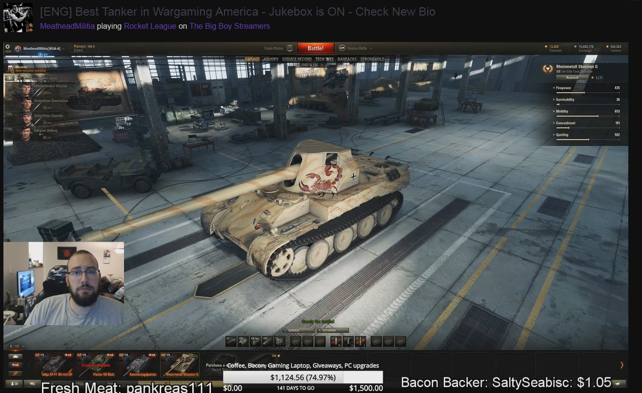 一名美服主播近日搞到了一台自带涂装的天蝎(莱茵金属天蝎G型Rheinmetal Skorpion G),说白了就是类似1357GF、58M型和德国斗牛GF这样的形式。