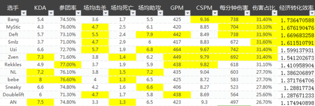 前四名中三个上榜提名,可以说都是疯狂Carry了自己的队伍,Jensen更是有单场20杀刷新历史的数据。北美已经变成了中单的世界,而刚在北美决赛上带领队伍夺冠的Bjergsen就是其中的佼佼者。(当然大家也可以围观一下韦神赛季末的华丽数据)