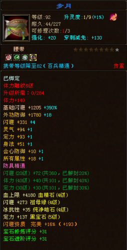 防具选择全属性的大八星,一定要加闪避,定力、所以属性、和会心防御,有经济能力最好要加个体,精通一定一体一闪避,或双体一定,双定一体皆可。