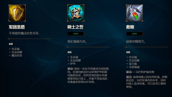 就防御性和实用性而言,军团圣盾的光环可是首屈一指的——甚至到了每个辅助必备的程度。我们将会移除这个光环,并且增加新的道具来为你的团队共更多主动的辅助方式。