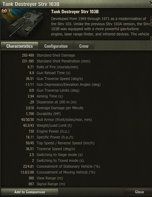 Strv 103B目前的完整版数据:
