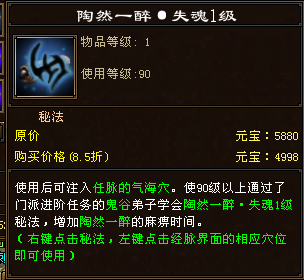 而陶然一醉满心法后是6秒的控制,但是面临现在豪侠印的减免伤害的满级减免两秒,所以控制时间只有4秒。
