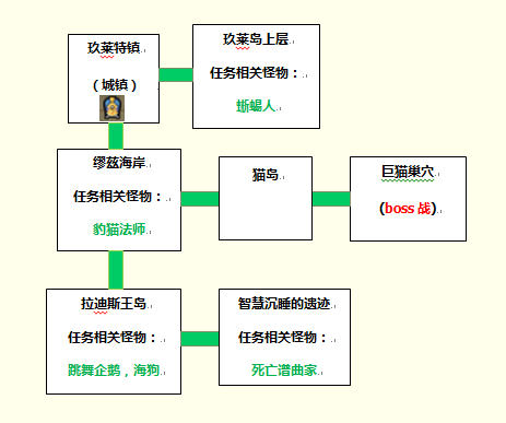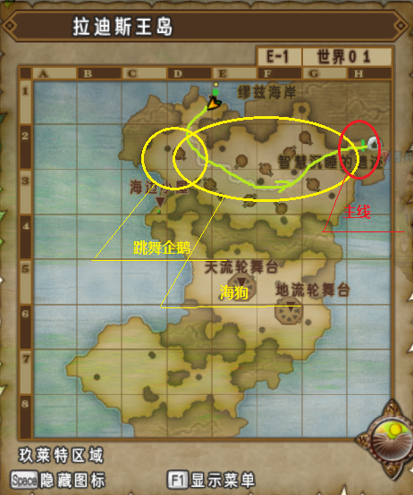 提示:在打倒跳舞企鹅获得幸福的羽毛之后,先交给玛丽卜,然后将玛丽卜的信交给身处丘拉拉纳海岸(F-3)的木隆,之后再向玛丽卜报告。