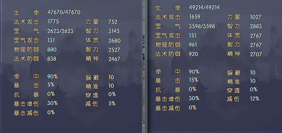 以下是数据面板对比:(左边是半强化半宝石,右边+11套)