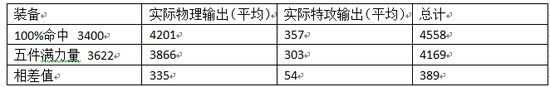 数据面板100%命中:物理攻击3400,特攻292