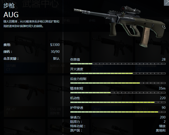 《CS:GO》武器之步枪 2017-09-11 17:03 新浪游戏 0 步枪 法玛斯 法玛斯 步枪 加利尔 AR 加利尔 AR 步枪M4A4 M4A4 步枪M4A1 消音版 M4A1 消音版 步枪AK-47 AK-47 步枪SSG 08 SSG 08 步枪AUG AUG 步枪SG 553 SG 553 步枪AWP 步枪AWP 步枪SCAR-20 步枪SCAR-20 步枪G3SG1 步枪G3SG1