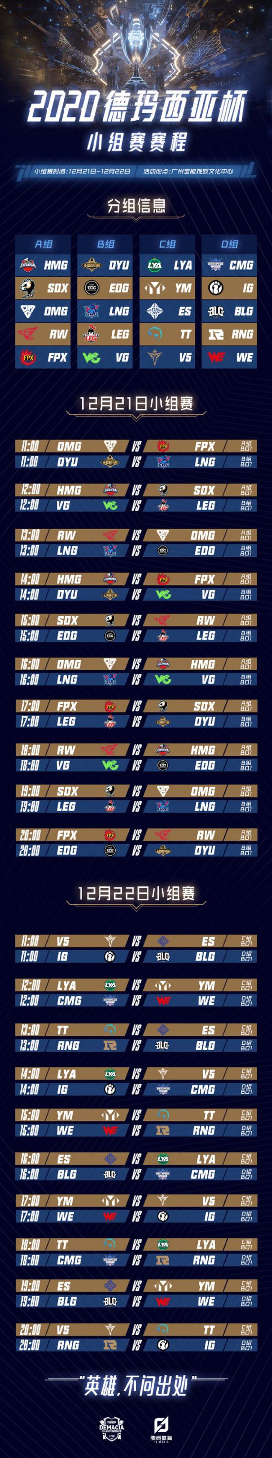 2020德玛西亚杯小组赛12月21日11:00正式拉开大战序幕,新征程新气象,究竟谁能血战突围,我们共同见证这场盛大的对决。英雄,不问出处!本次德玛西亚杯小组赛舞台采用的是双舞台设计,两个小组同时开打。