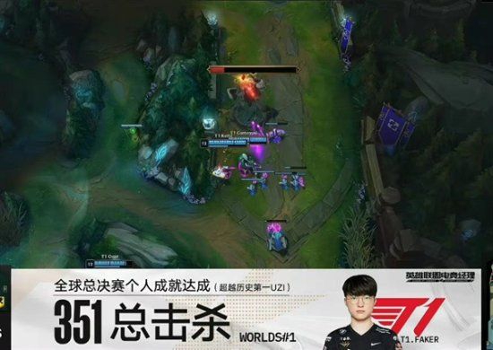在今天《英雄联盟》S12小组赛第二轮首日的比赛中,T1 vs FNC,T1传奇中单选手Faker迎来了自己的全球总决赛第351次击杀,超越历史第一Uzi,成为全球总决赛击杀第一。