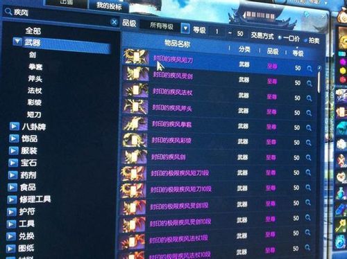 剑灵疾风武器水月水银可上架 2014-09-28 09:45 新浪游戏 0 在剑灵雪玉宫版本中,除了水月水银外,白青山脉副本复活符和封印后的疾风武器同样可以上架,那些业内资深奸商,怎么能放过这次大好的炒货机会呢。