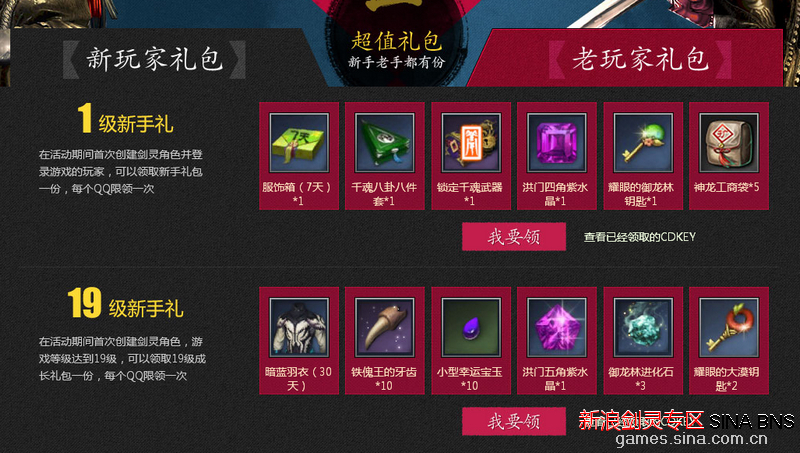 在活动期间首次创建剑灵角色,游戏等级达到19级,可以领取19级成长礼包一份,每个QQ限领一次
