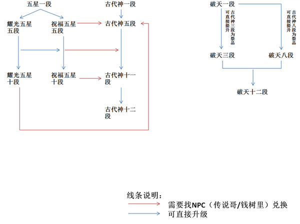3、祝福五星首饰在五段后可在NPC处兑换同等段位的古代神首饰 祝福五星十段兑换古代神十一段。