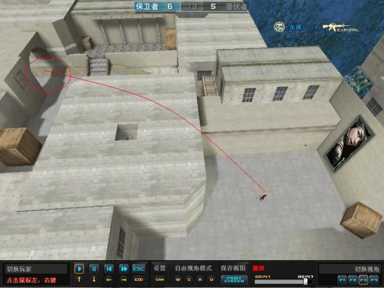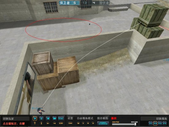2、反弹投掷:顾名思义,就是利用某个位置的墙壁,箱子等物体,使得投掷武器发生反弹,从而达到正面常规投掷无法达到的位置,确保自己的安全。