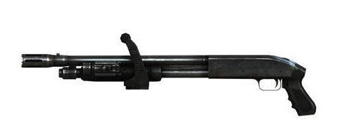像手持电锯一样的特别的散弹枪,射击时的后座力更小,弹道更加密集。