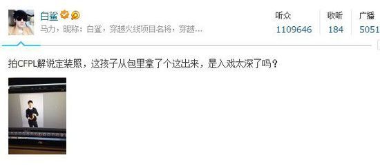 同事白鲨微博也更新了一条新闻,内容CFPL解说定装照。这里我们也可以看出手拿香蕉xyc已经确定为CFPL S5的解说。