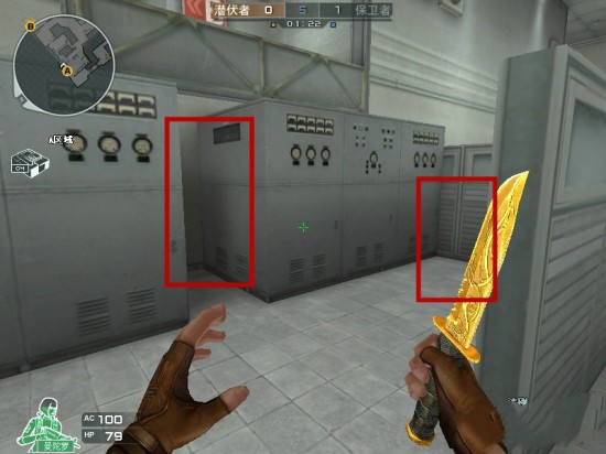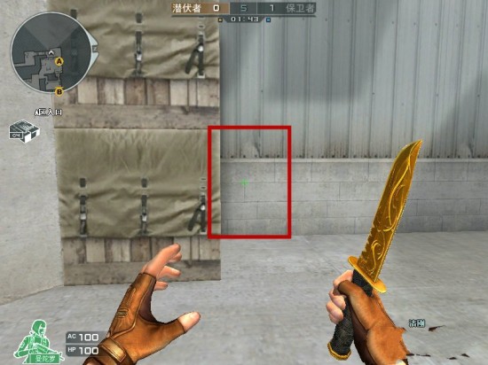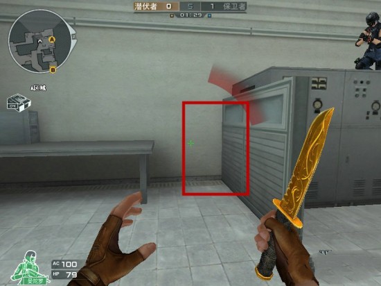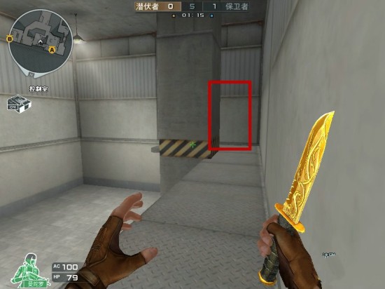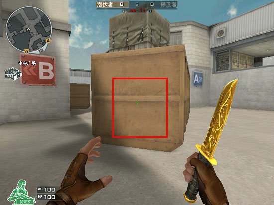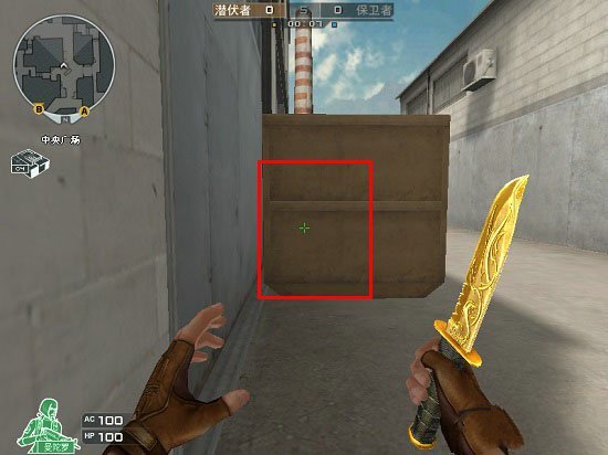 潜伏没有进攻中路,而保卫选择中路顶防,或者是残局确定潜伏的方位,很多保卫会藏匿在1箱后,潜伏过来基本就是侧身了。