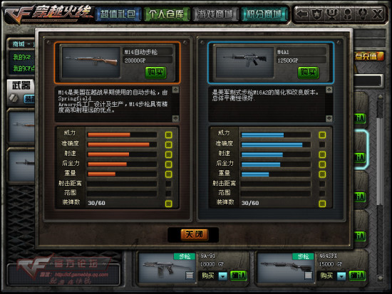 M14枪械全长1118毫米,重量4.5公斤,子弹初速850米/秒,有效射程700米,弹容量30/60,售价20000GP。