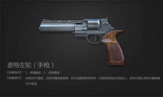 穿越火线麦特左轮手枪介绍 2014-10-20 16:41 新浪游戏 0 麦特左轮(手枪) 意大利Mateba公司制作的自动手枪的改进版,在枪管的下方增加了活塞,保证了火力的同时,增加了枪械的稳定性。 枪重: 1.35 kg 全枪长:275 mm 有效射程:150m 弹匣容量:6/30 上手度:二星 热门度:三星麦特左轮(手枪)