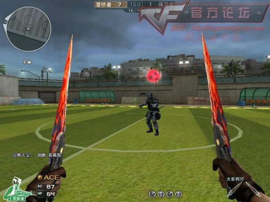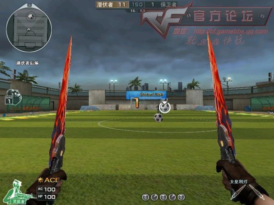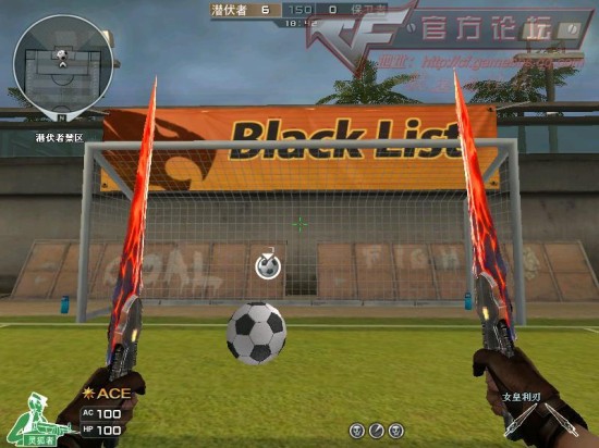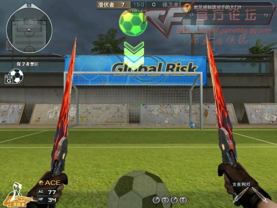 和所有的足球比赛一样,在这张地图中,进球才是我们的最终目的。刀战只是辅助于断球和阻挡对方的进攻路线。双方出生也位于中圈两端,因此在开场哨响的那一刻,为抢的球权就也意味着双方必须要进行大规模的厮杀。