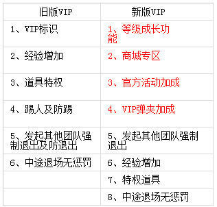 这次对于VIP的革新,新的特权和功能是除了等级制度以外的另一个重点。我们可以对比的看下新老VIP在特权上的不同。