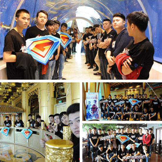 赛前热身,选手们在导游的带领下来到了龙希大酒店里的观光层,百鸟朝凤图、一顿金牛、室内水族馆等观光点看得小编和选手们是眼花缭乱、目不暇接,没想到在这座神秘的高楼中竟然还隐藏着如此精彩的游览区,我们的全民星小伙子们也在各层观光点上留下了属于他们的足迹。