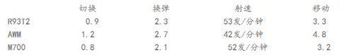 从速度上来说,R93T2尽管不及M700,但是却完爆AWM,不论从任何方面来说。由于R93T2有着足以一枪击毙对手的能力,所以弥补了他速度上的问题。快速的换弹也当你不用太担心子弹少的问题。